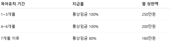 급여 첫 3개월 100%/상한 250만원 → 7개월 이후 80%