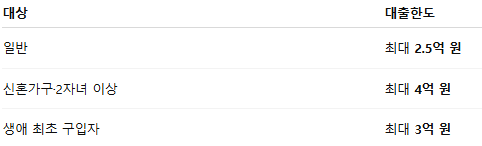 - 생애최초·2자녀 이상 가구는 6억 원 이하