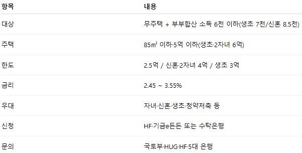 - 2025년 기준 연소득 6천만 원 이하 무주택자