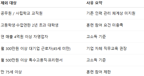 훈련비 자부담 대폭 완화 또는 100% 지원이 가능합니다.❌ 지원 제외 대상 (중요)
