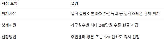 긴급복지 생계지원 신청방법·지원대상·지원금액 총정리 위기는 누구에게나 갑작스럽게 찾아올 수 있습니다.