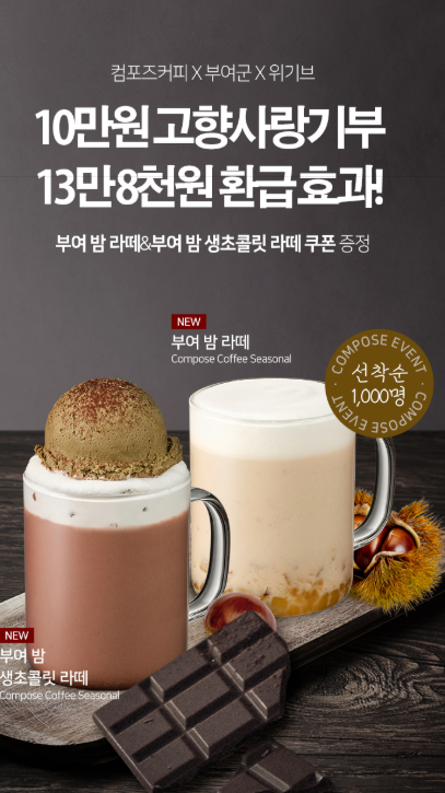 출처: 컴포즈커피 / 컴포즈커피 x 부여군 기부 이벤트 솔직히 처음 이미지를 봤을 때
