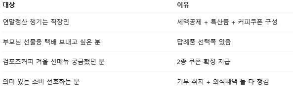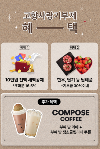👉 즉, 기부 10만원 → 세액공제 + 지역특산품 + 커피쿠폰까지